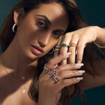 Indulge in a symphony of style with our Pear Enamel Ring—a fusion of pear-cut stones, CZ stones, and vibrant enamel accents. This balance of color and shine highlights the beauty of each element, making it a statement piece for any occasion.